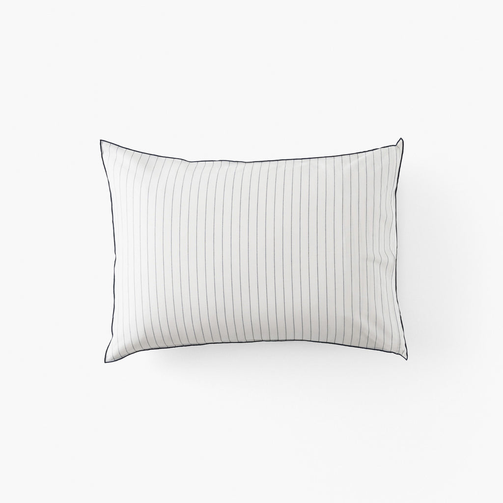 Taie d'oreiller rectangulaire lin et coton lavé Tempos marine rayé