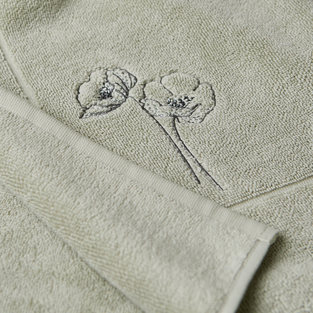 La parure de bain Éphelia s’inscrit dans une collection raffinée et riche en savoir-faire, qui met en broderie le coquelicot blanc, symbole de paix, et de souvenir, pour apporter une touche délicate à votre salle de bain.